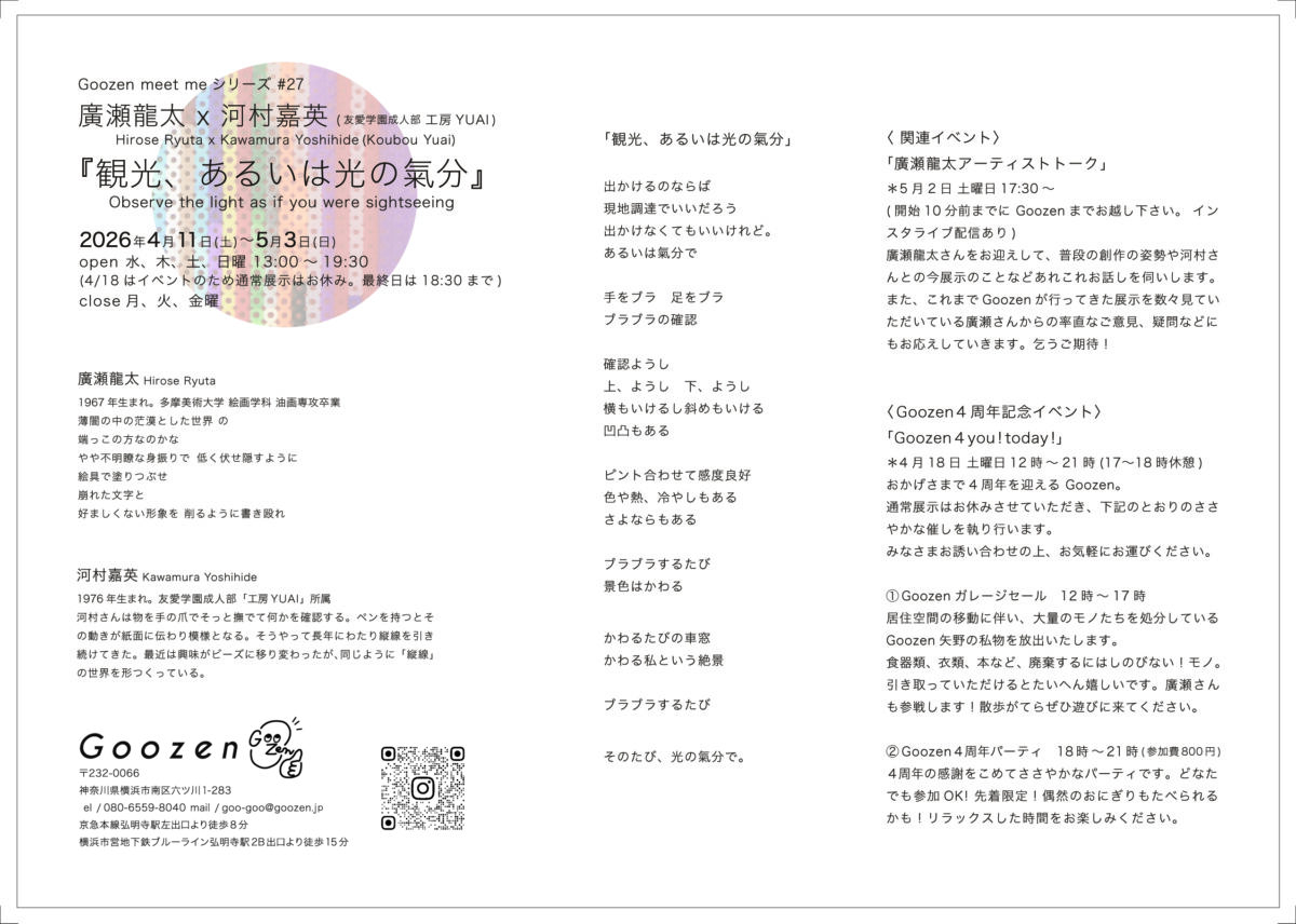 Goozen meet me シリーズ #27 『観光、もしくは/あるいは光の氣分』